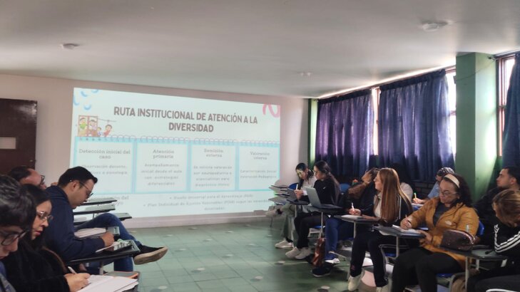 En el marco de la jornada institucional, se llevó a cabo un proceso de sensibilización dirigido a los docentes, orientado a fortalecer las herramientas pedagógicas y socioemocionales para la atención de estudiantes con necesidades educativas diversas.