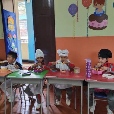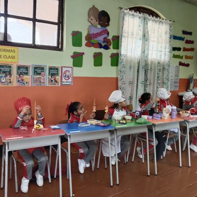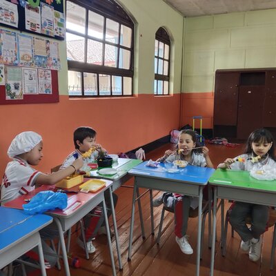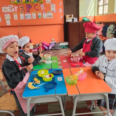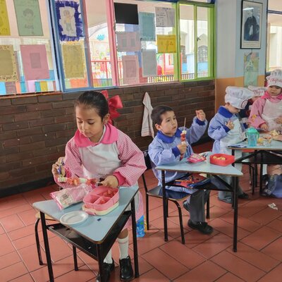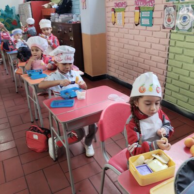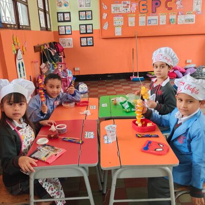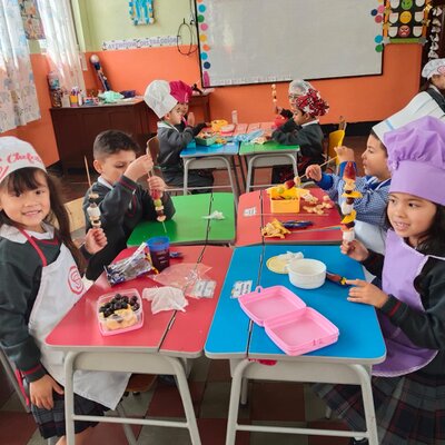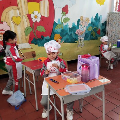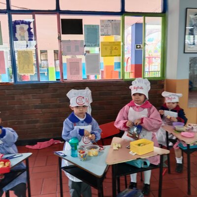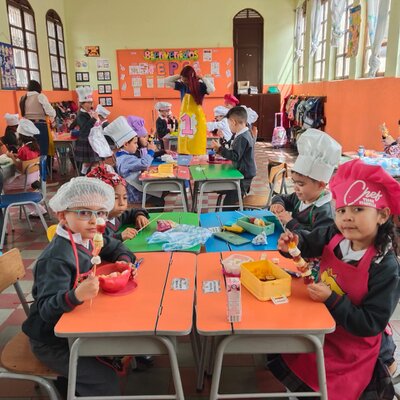 Los niños llegaron al colegio llenos de entusiasmo, vestidos como pequeños chefs, con delantales, gorros y toda la actitud de verdaderos cocineros. Durante la jornada, exploraron el mundo de la cocina a través de juegos, dinámicas sensoriales y actividades donde el gusto, el olfato y la imaginación fueron los protagonistas.